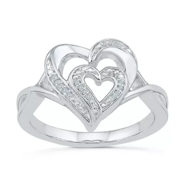 Womens Diamond Accent Natural White Sterling Silver Heart Cocktail Ring