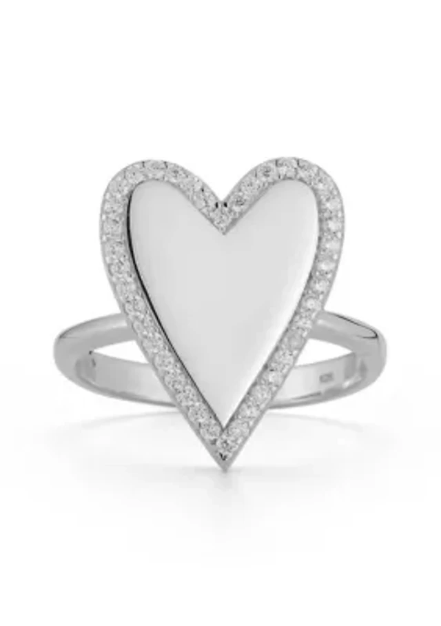 Sterling Silver Cubic Zirconia Halo Heart Signet Ring