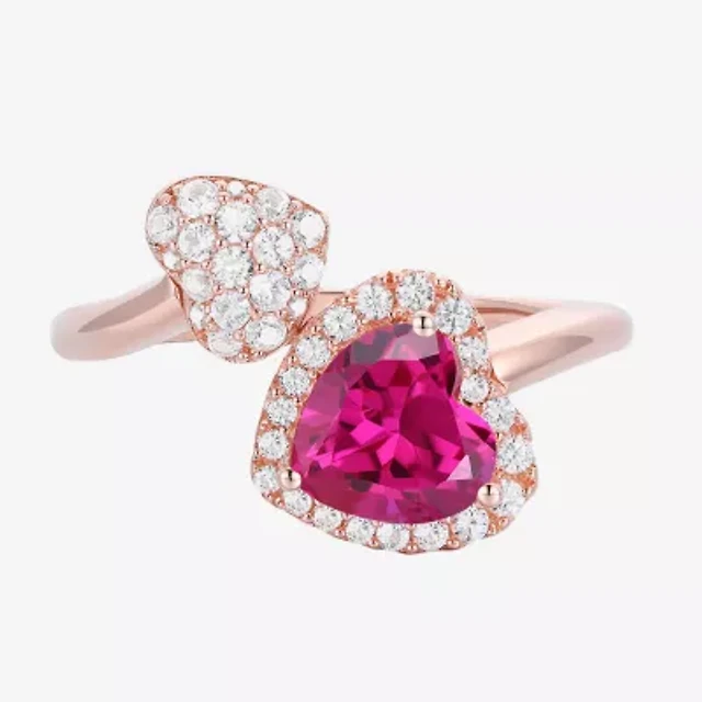 Sparkle Allure Womens Red Crystal Pure Silver Over Brass Heart Ring Set