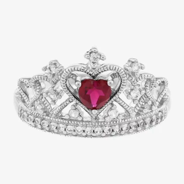 Womens Lab Created Red Ruby Sterling Silver Heart Halo Side Stone Cocktail Ring