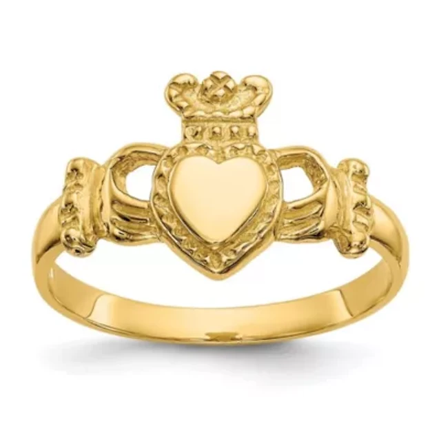14K Yellow Gold Enamel Claddagh Ring