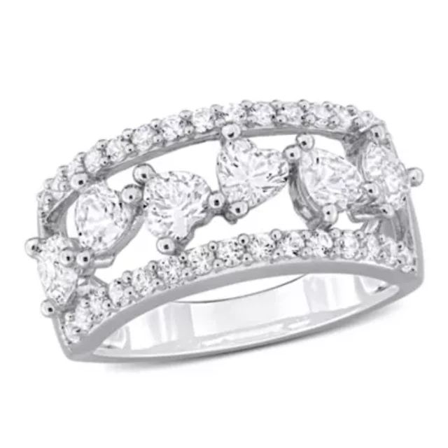 Itsy Bitsy Womens Crystal Sterling Silver Heart Delicate Band