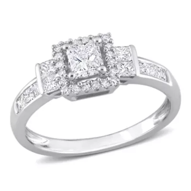 3/8 CT TDW Diamond Square Halo Ring 10k White Gold