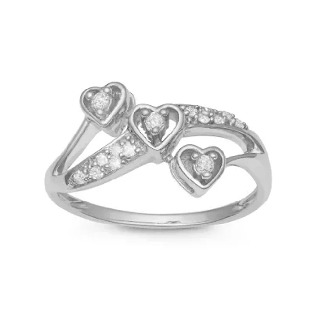 Sterling Silver Cubic Zirconia Three Heart Ring