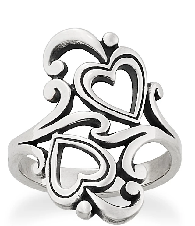 1/6 CT. T.w. Diamond Tilted and Sideways Double Interlocking Hearts Split Shank Promise Ring in Sterling Silver