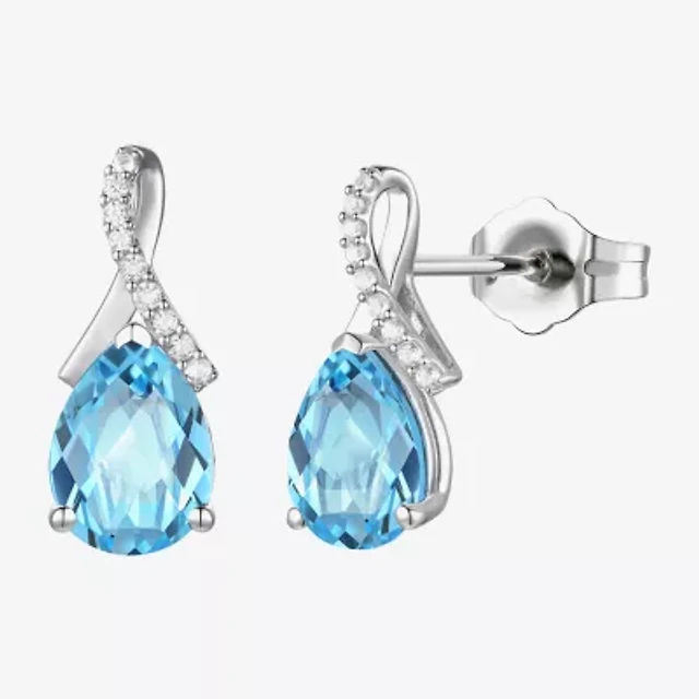 Oval-Cut Aquamarine & White Lab-Created Sapphire Drop Earrings Sterling Silver