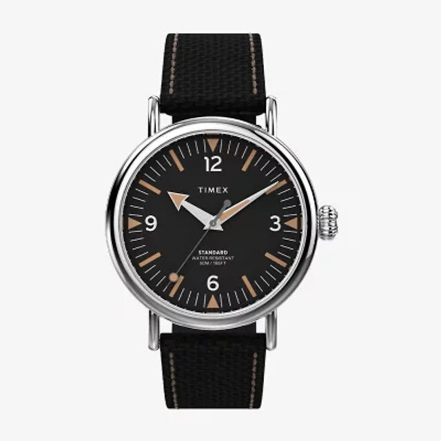 Timex Mens Black Leather Strap Watch Tw2y16000jt
