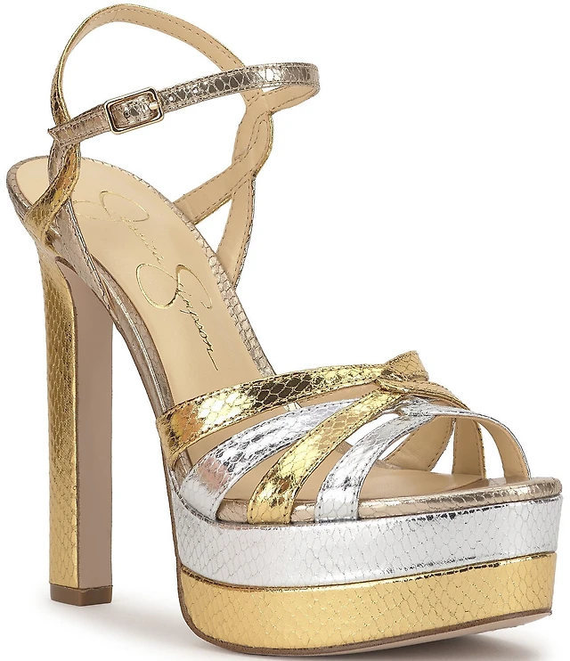 Jessica Simpson Ilaria Studded Floral Brocade Pearl Embellished Caged Platform Sandals