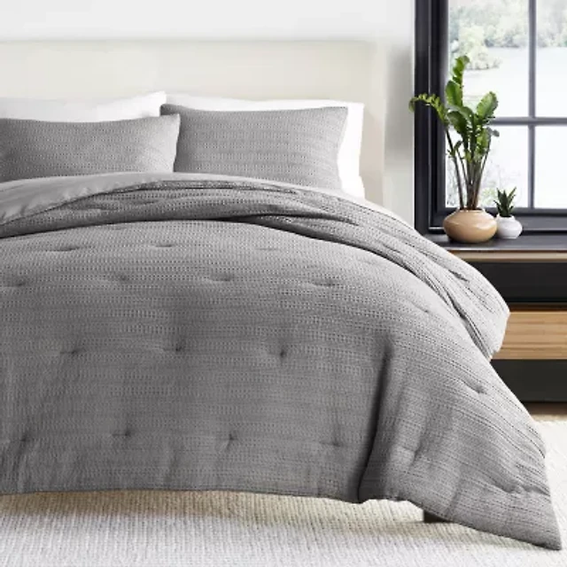 Truly Soft Textured Waffle Midweight Comforter Set