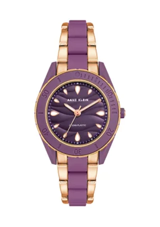 Gold Tone Metal Band Watch with Navy Dial