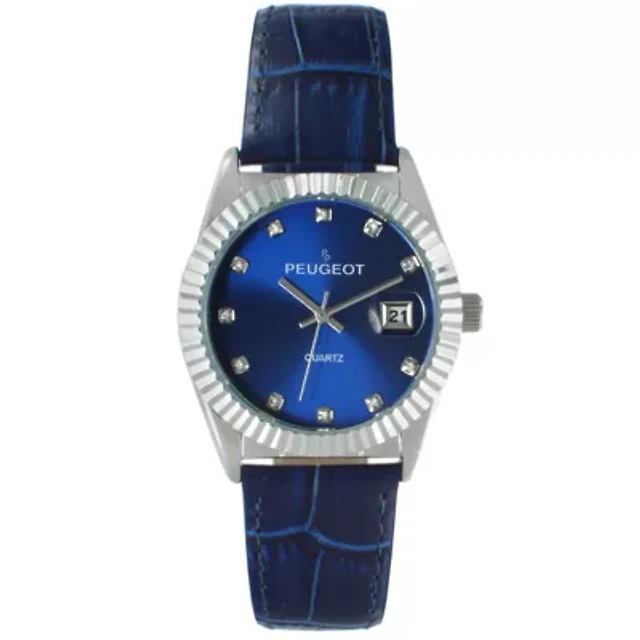 Peugeot Women's 36mm Blue Fluted Bezel Watch with Leather Strap