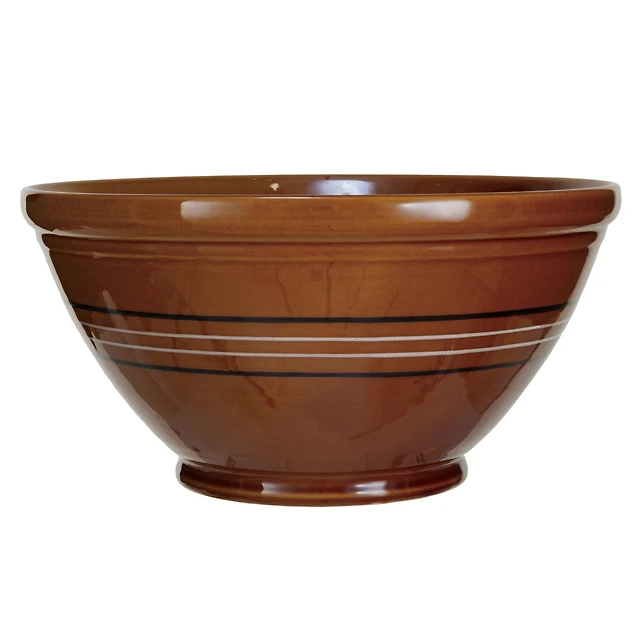 Hello Honey® 6qt. Brown Reactive Glaze Stoneware Mixing Bowl with Black & White Lines