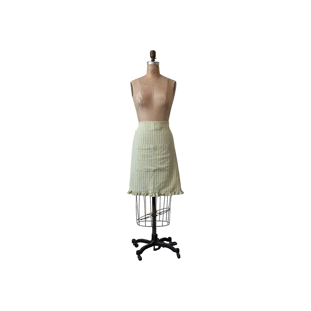 Hello Honey® Natural & Green Striped Cotton Half Apron with Ruffle