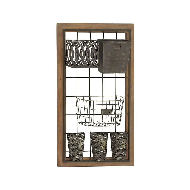 Brown Wood Industrial Wall Hooks with Shelf