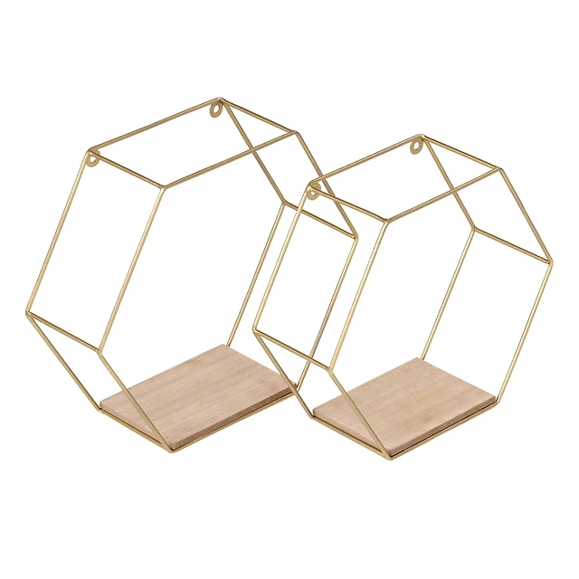 20" Gold Wood Glam Wall Shelf Set