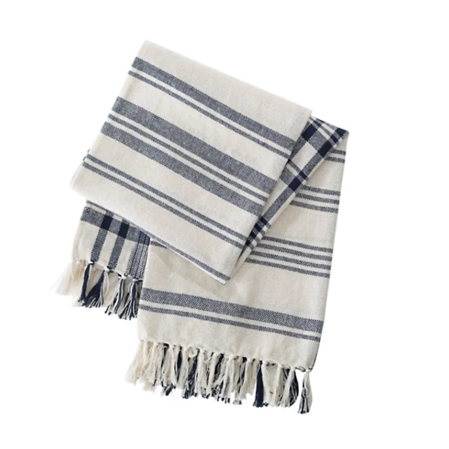 Blue and White Striped Tassel Throw