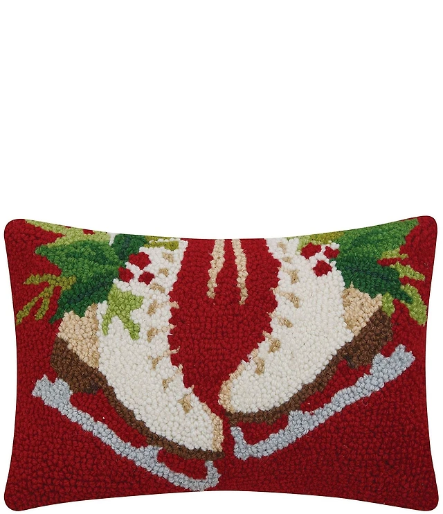 Peking Handicraft Holiday Ice Skates Wool Hooked Pillow