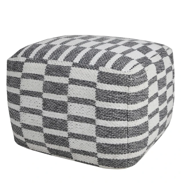 Dark Gray Tasseled Static Geo Cotton Square Pouf