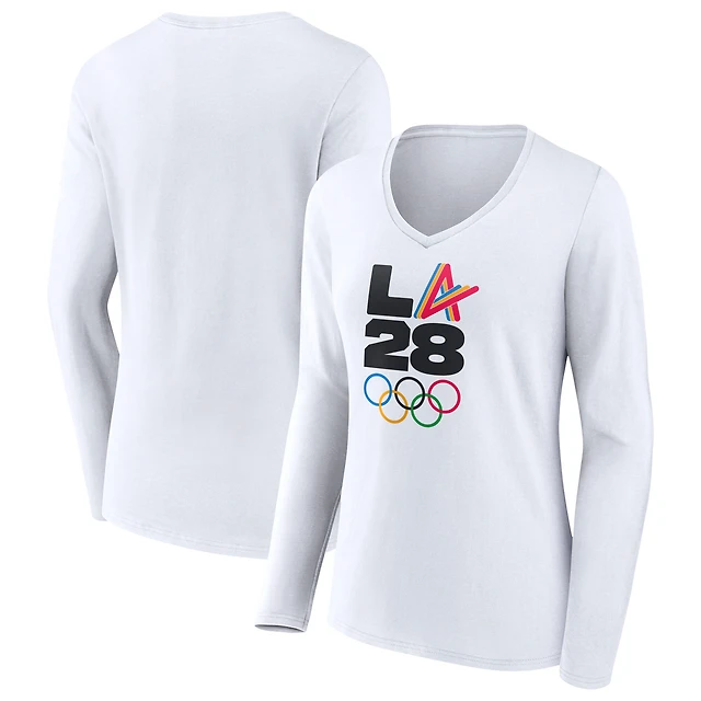 Women's White LA 2028 Summer Olympics Athlete Spirit V-Neck Long Sleeve T-Shirt