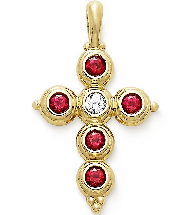 Journey Lab-Created Ruby Drop Pendant in 10K Gold with Diamond Accents