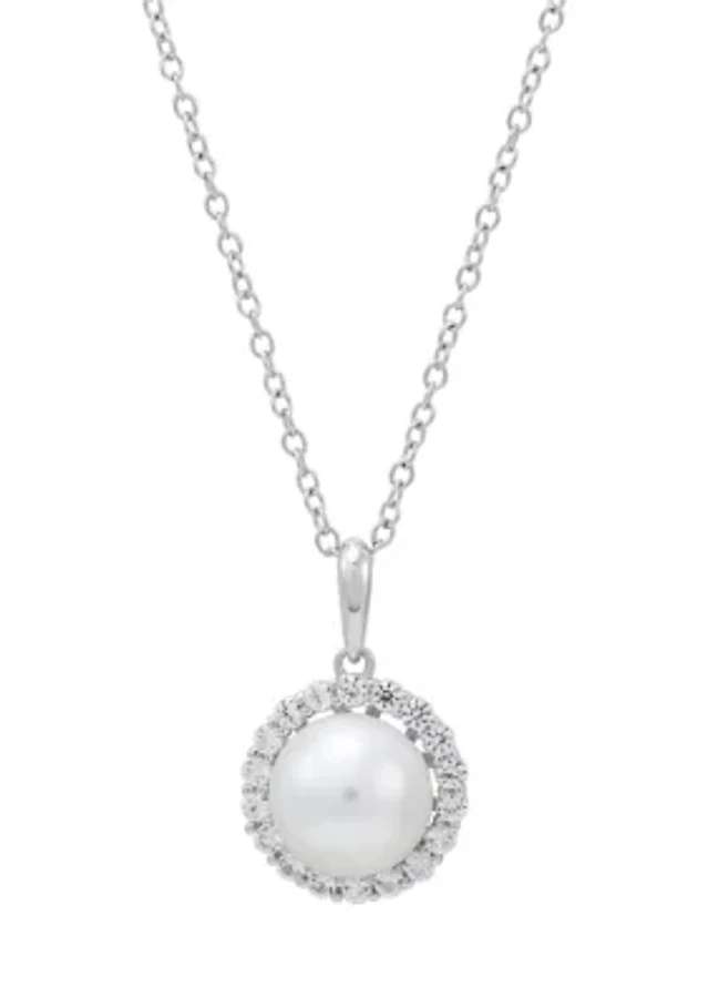 Previously Owned-6.5-7.0mm Freshwater Cultured Pearl and Lab-Created White Sapphire Jewelry Set