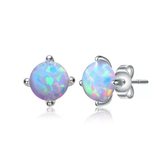 Lab-Created Opal and Cubic Zirconia Stud Earrings Set in Sterling Silver