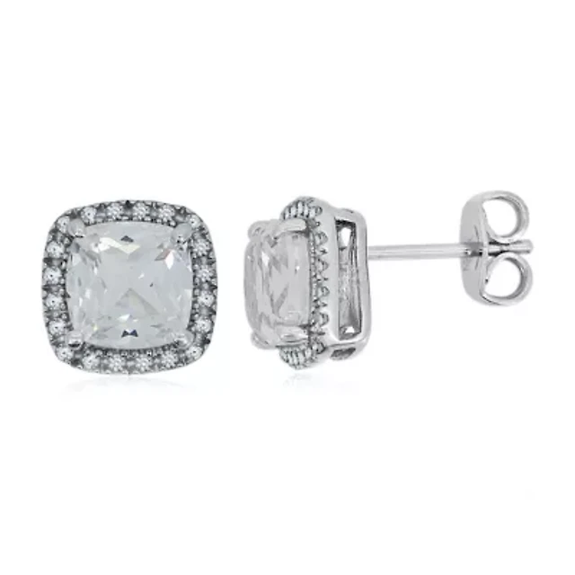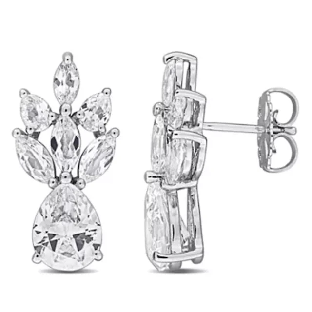 Womens Lab Created White Sapphire Sterling Silver Drop Earrings