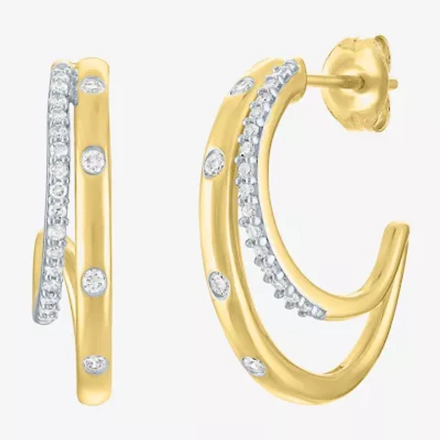 (I / I2) Womens 1/2 CT. T.W. Lab Grown White Diamond 14K Gold Over Silver 17.4mm Hoop Earrings