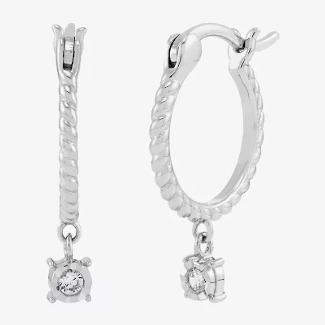 (I1-I2/ G-H) Womens 1/10 CT. T.W. Lab Grown White Diamond 14K Gold Over Silver Sterling Silver 21.9mm Hoop Earrings