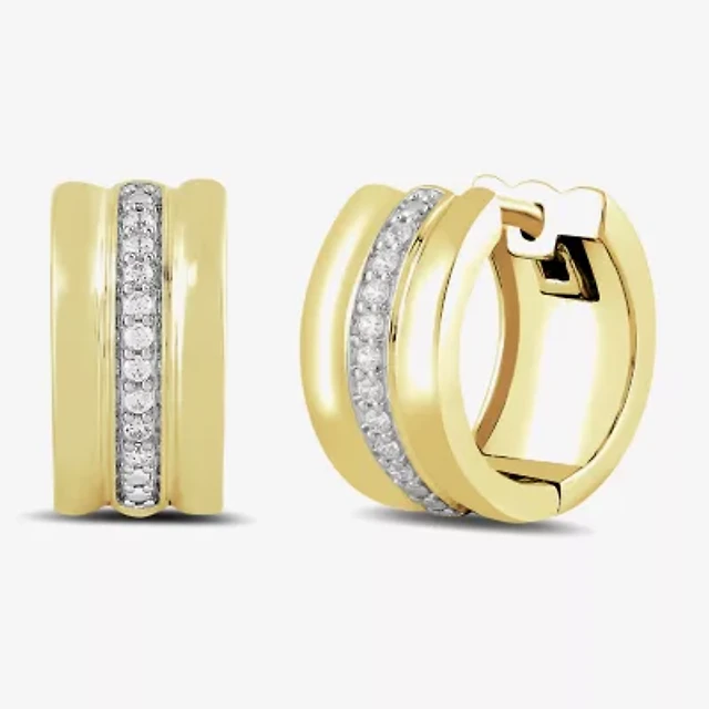 (H-I / I1) Womens 1 CT. T.W. Lab Grown White Diamond 10K Two Tone Gold 22.7mm Curved Hoop Earrings