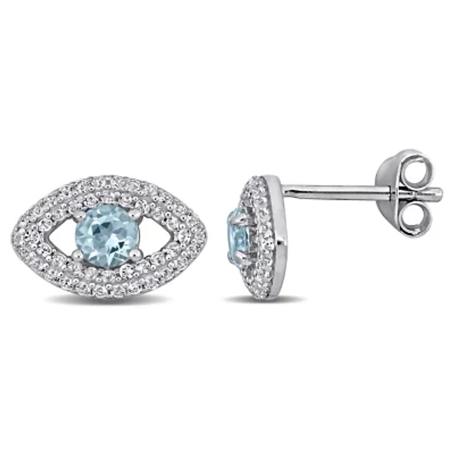Lab Created Gemstone Sterling Silver 10.3mm Halo Stud Earrings