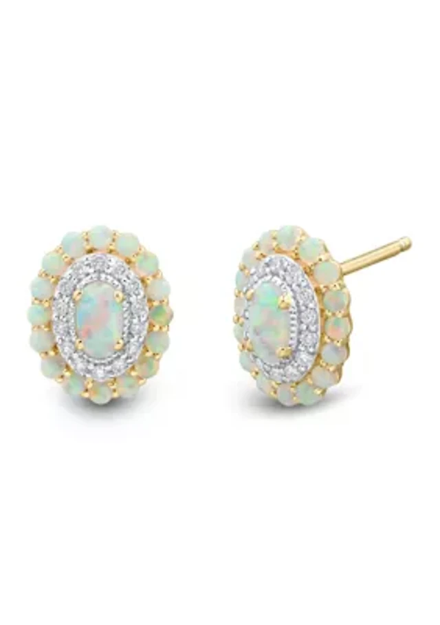 Lab Created White Opal 10K Gold 6mm Stud Earrings