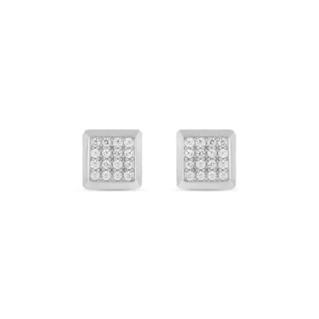 Lab Created 1/5 Carat Lab Grown Diamond Square Men’s Earring in Sterling Silver