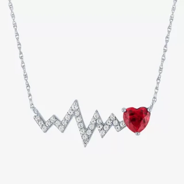 Womens Lab Created Red Ruby Sterling Silver Heart Inch Pendant Necklace