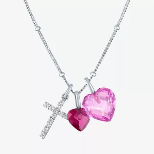 Womens Diamond Accent Lab Created White Sapphire Sterling Silver Heart 18 Inch Pendant Necklace