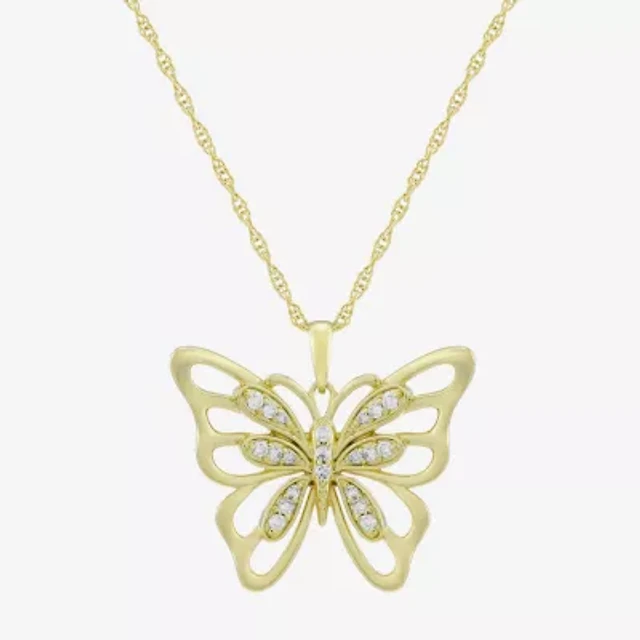 (H-I Womens 1/10 CT. T.W. Lab Grown White Diamond 14K Gold Over Silver Sterling Silver Butterfly 18 Inch Pendant Necklace