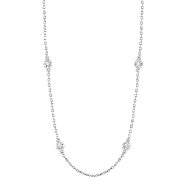 Emerald-Cut White Lab-Created Sapphire Curved Bar Necklace Sterling Silver 18"