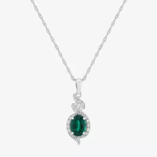 Christmas Tree Womens 1/10 CT. T.W. Lab Created Green Emerald Sterling Silver 18 Inch Pendant Necklace