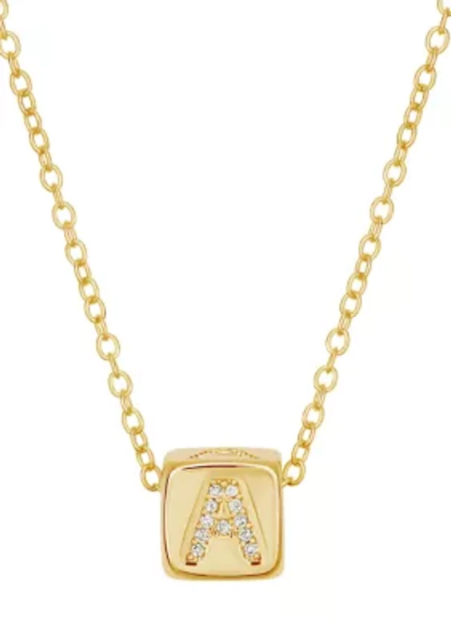 Sterling Silver Cubic Zirconia Initial Lock Pendant Necklace