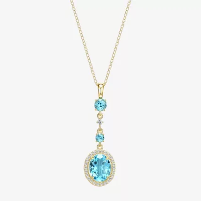 E Womens Genuine Blue Topaz 14K Gold Over Silver 18 Inch Pendant Necklace