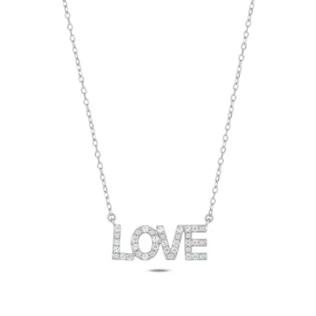 Photo Tilted Heart Necklace with White Lab-Created Sapphires Sterling Silver 22"
