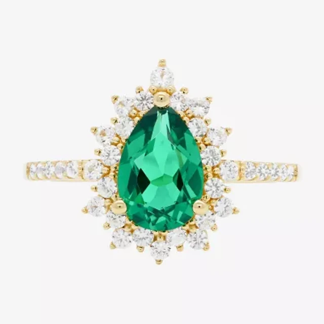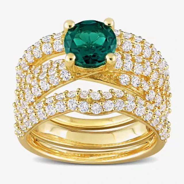 Womens Lab Created Green Emerald 18K Gold Over Silver Round Bridal Set