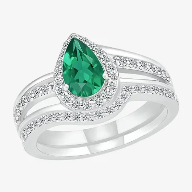 Modern Bride Gemstone Womens Lab Created Green Emerald 14K Gold Pear Bridal Set
