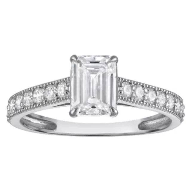 Silver Cubic Zirconia Emerald Cut Ring