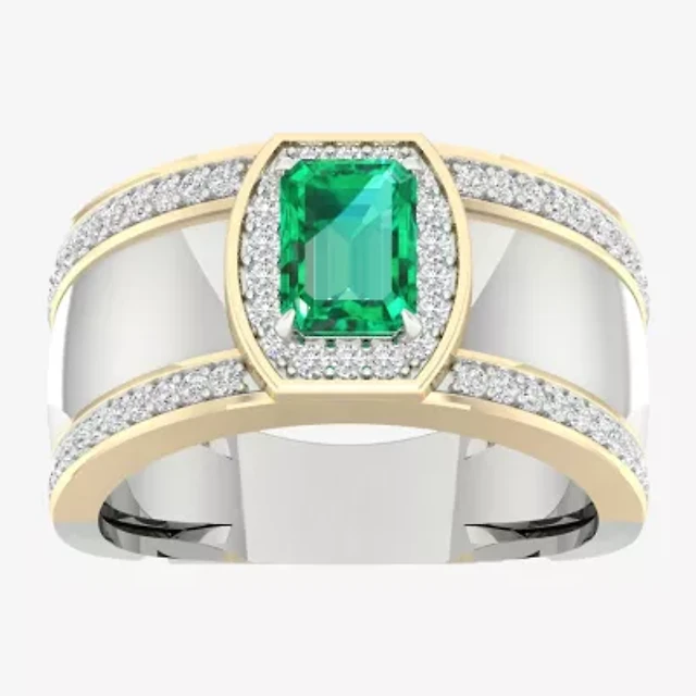 Mens Lab Created Green Emerald 10K Gold Sterling Silver Fashion Ring