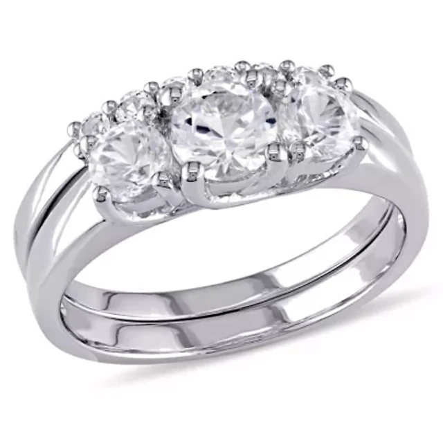 Lab Created Carat Grown Diamond Three Stone Engagement Ring Sterling Silver