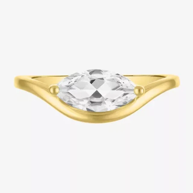 Womens Lab Created White Sapphire 14K Gold Over Silver Marquise Solitaire Cocktail Ring