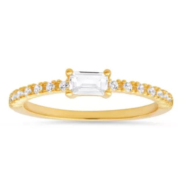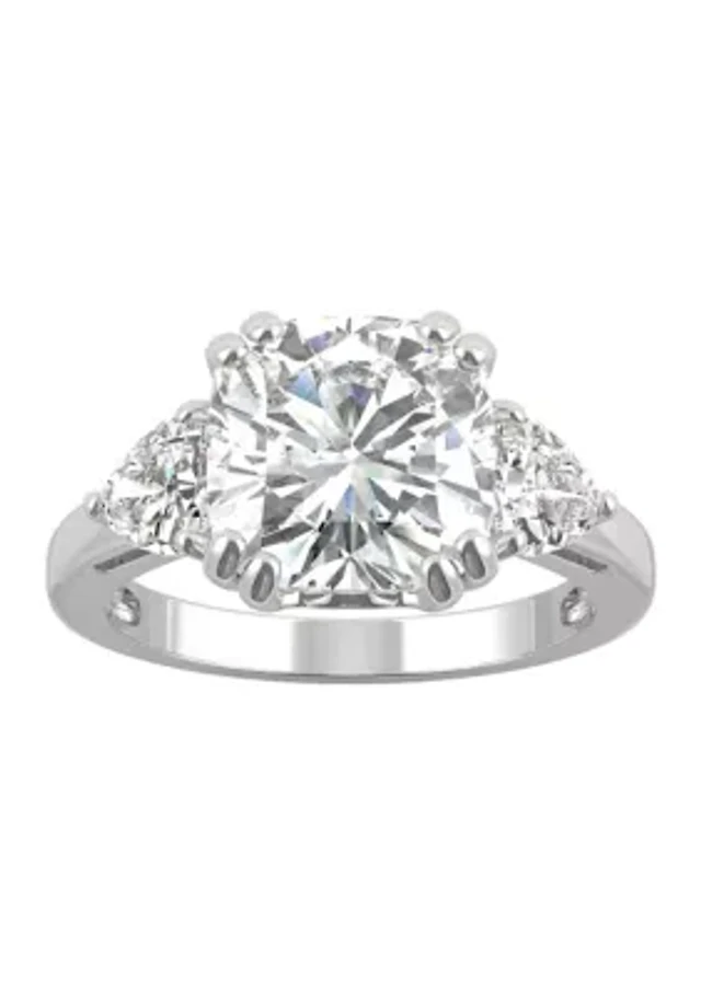 Sterling Silver Square-Cut Emerald Cubic Zirconia and Trillion White Ring