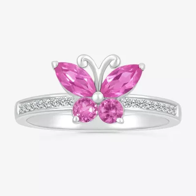 Trillion-Cut Lab-Created Pink and White Sapphire Bow Tie Ring in Sterling Silver