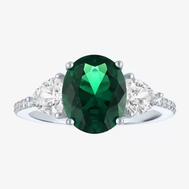 Womens 2 CT. T.W. Genuine Green Emerald 10K White Gold Round Cocktail Ring